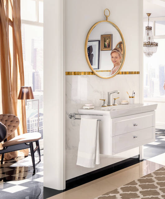 - Tegels: marmeren tegels zijn bij deze stijl erg populair vanwege hun tijdloze uitstraling. Maar ook wandtegels met patronen, mozaïeken en sierranden zijn steeds populairder bij klassieke badkamers.